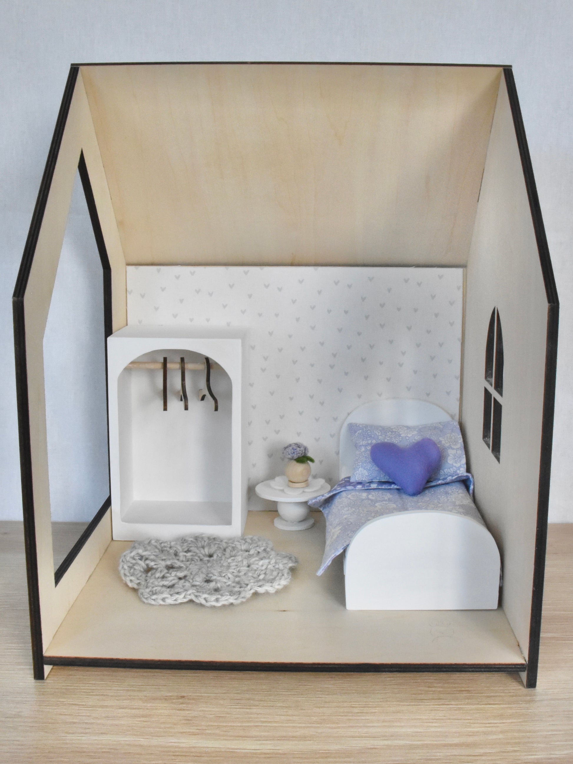 Bedroom and living room for your wee bunny or other small doll/ toy such as Maileg. Includes all furniture and soft furnishings.